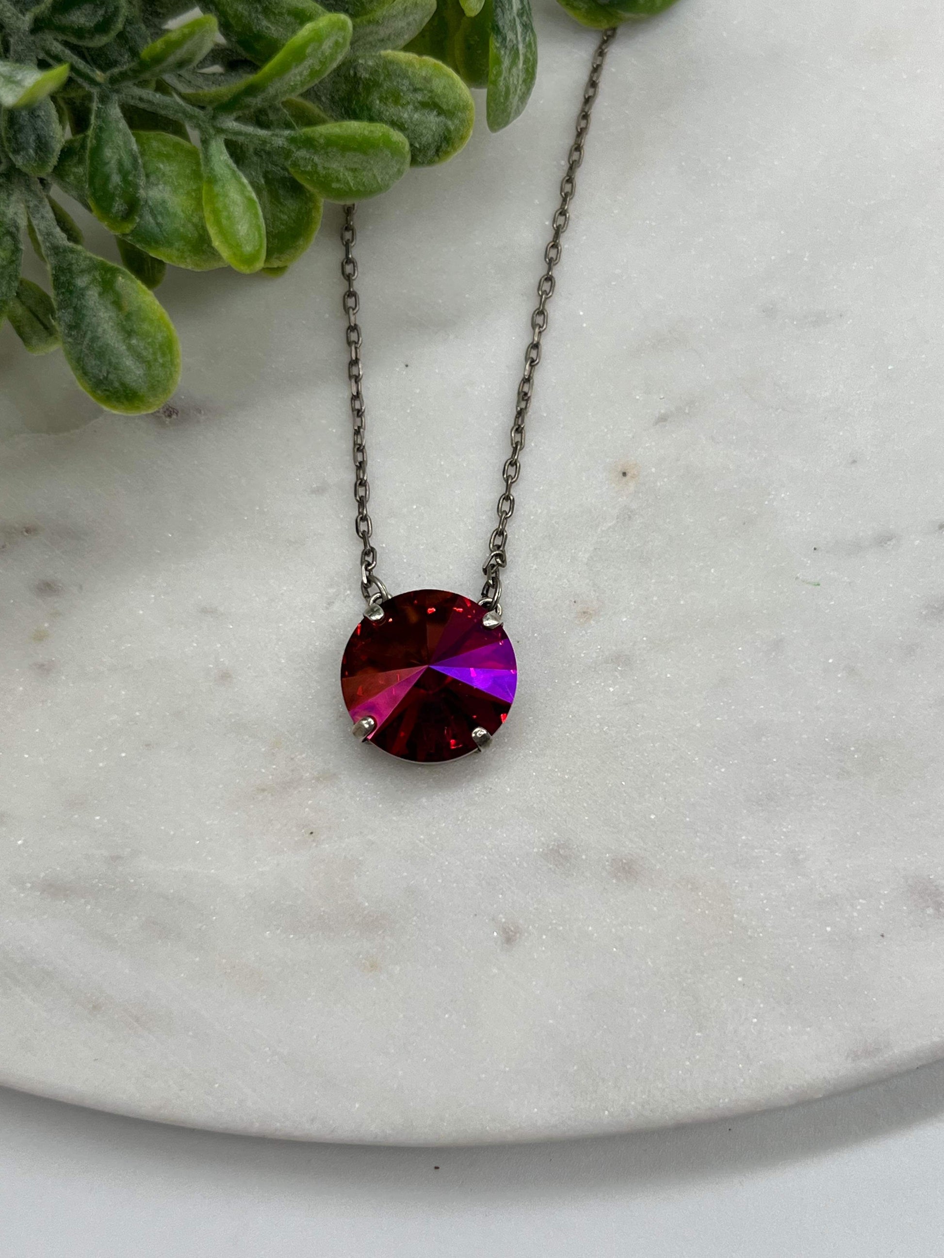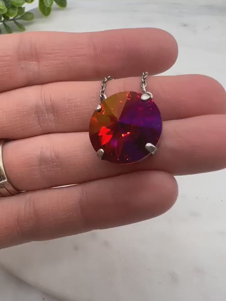 Single 18mm crystal. Specialty color with shades of red, pink and slight copper.
